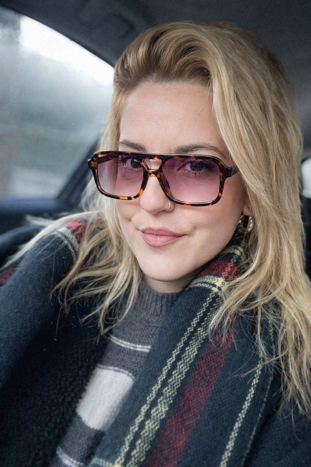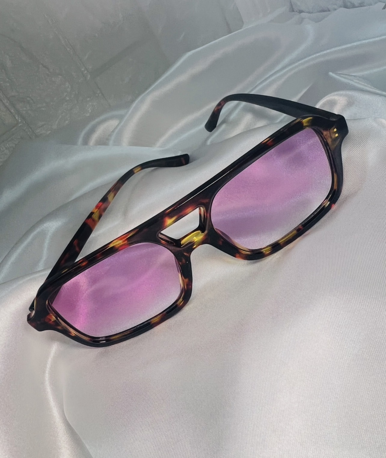 Γυαλιά Ηλίου UV400  Πλαστικός Σκελετός (No Name) Χρώμα Ταρταρούγα με φακούς Ροζ Μωβ