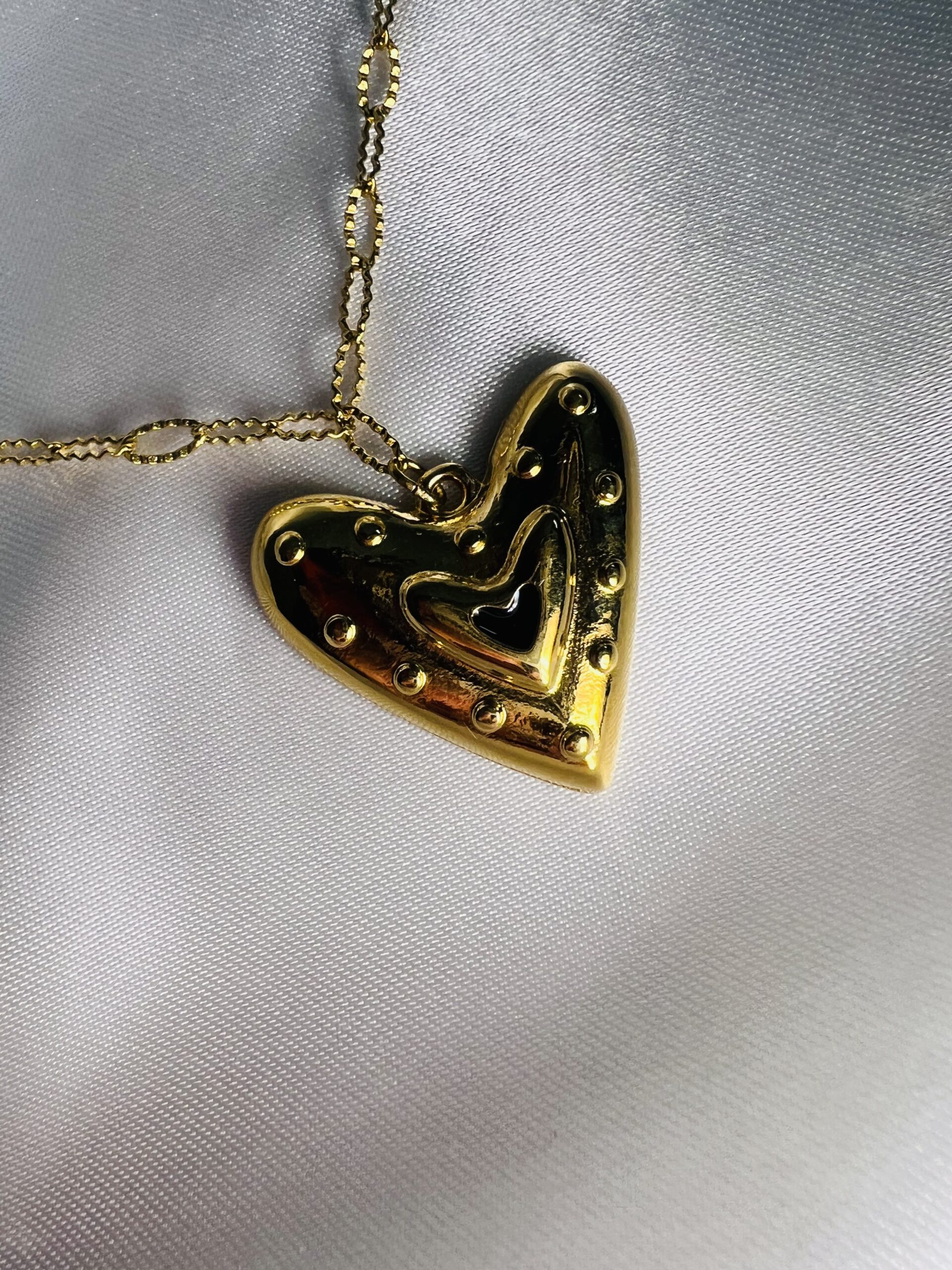 Καρδούλα χειροποίητο κολιέ με Αλυσιδάκι λεπτεπίλεπτο σκαλιστό και καρδιά