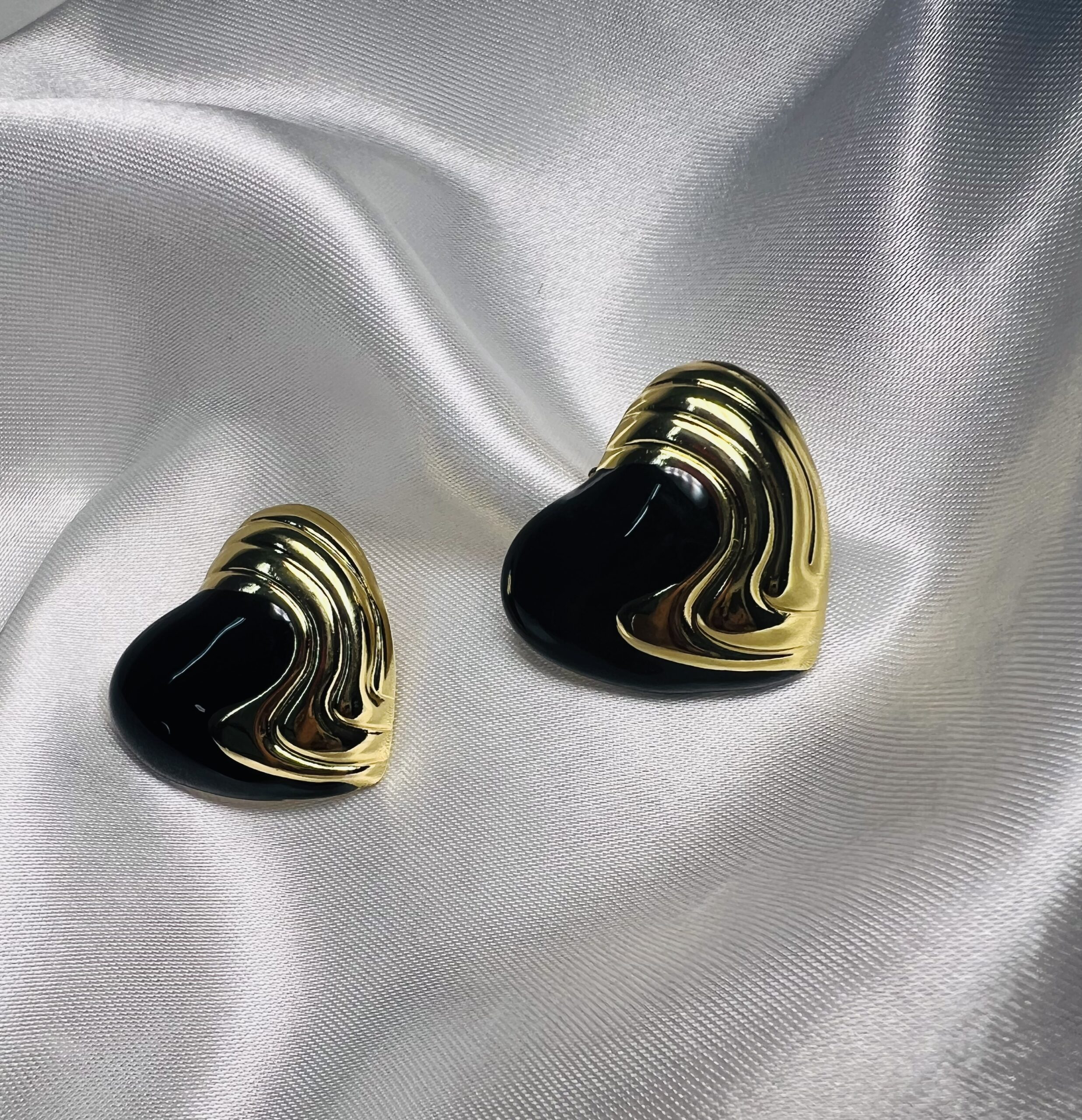 A half heart black & gold.Σκουλαρίκια σε σχήμα καρδιάς μισό χρυσό, μισό μαύρο σε απόλυτη αρμονία. Ένας τολμηρός συνδυασμός κομψότητας και αντίθεσης.