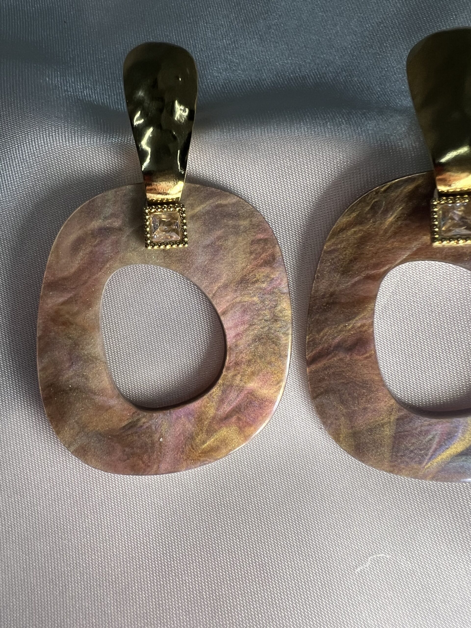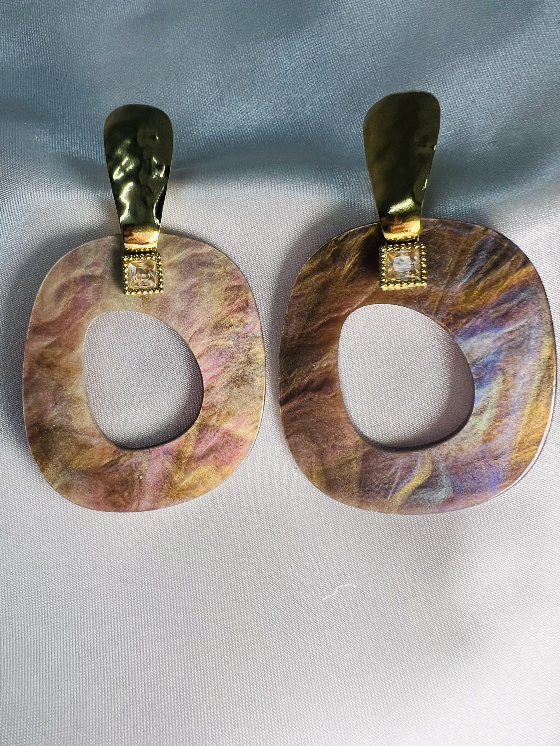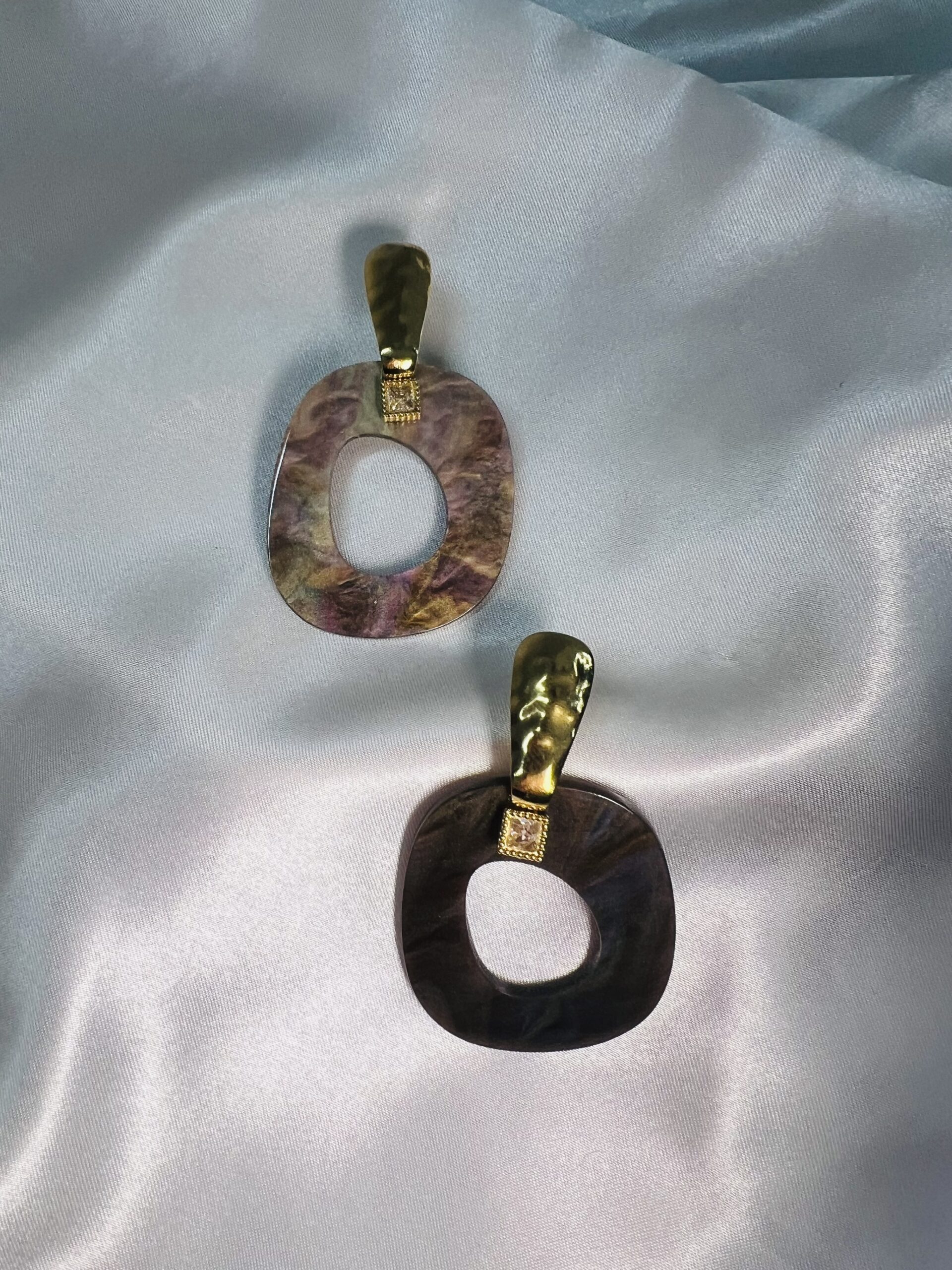Εντυπωσιακό καρφωτό σκουλαρίκι σε καφέ χαμαιλέοντα απόχρωση που μεταμορφώνεται με το φως. Διακοσμημένο με διακριτικό διαμαντάκι και χρυσή βάση, συνδυάζει πολυτέλεια και χαρακτήρα. Ένα statement κόσμημα που δεν περνά απαρατήρητο.