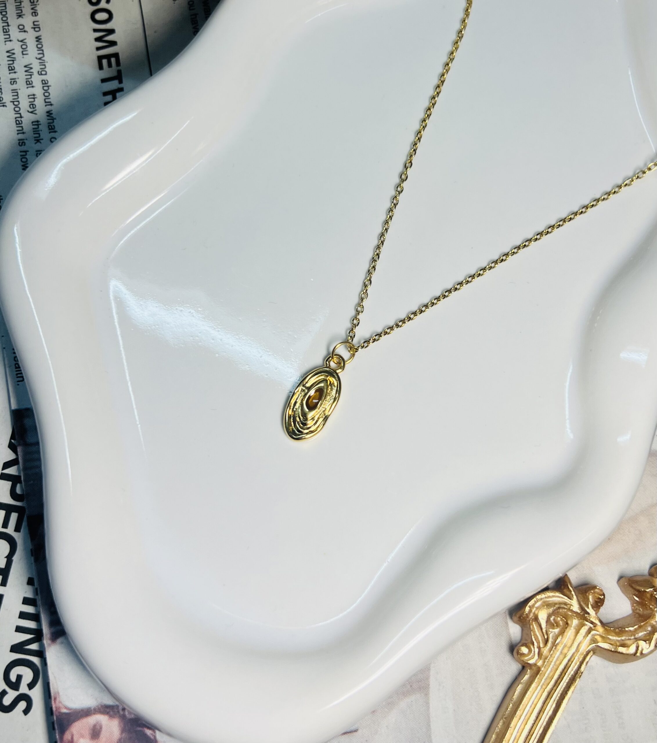 Gravure brune χειροποίητο κολιέ από ανοξείδωτο ατσάλι επιχρυσωμένο